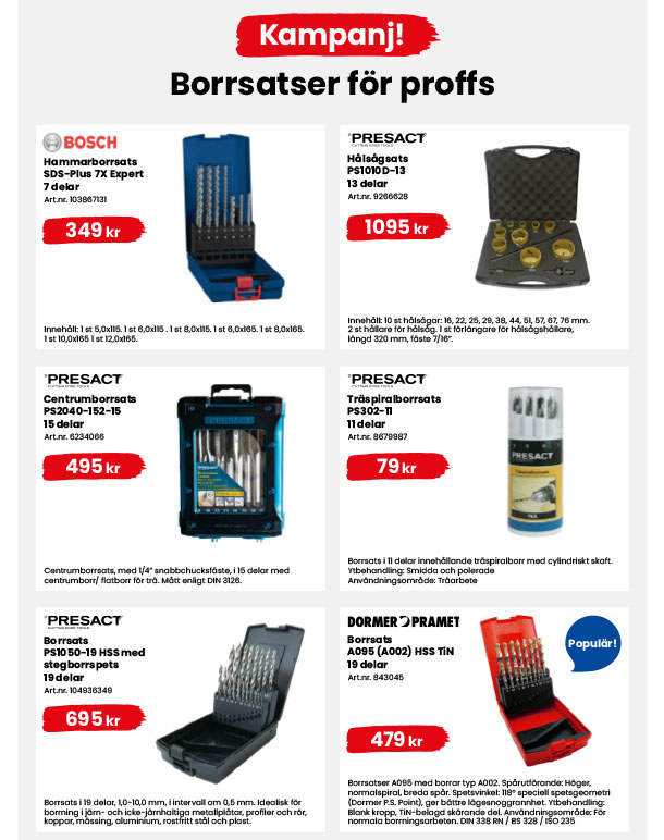 Upptäck vår samling med smidiga borrsatser nu till kampanjpriser. Pågår t.o.m. 30 april 2026.